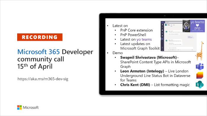 Microsoft 365 Developer Community Call recording -- 15th of April, 2021