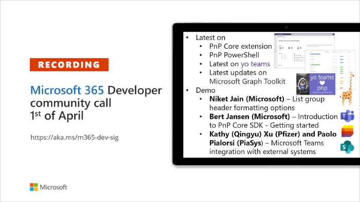 Microsoft 365 Developer Community Call recording -- 1st of April, 2021