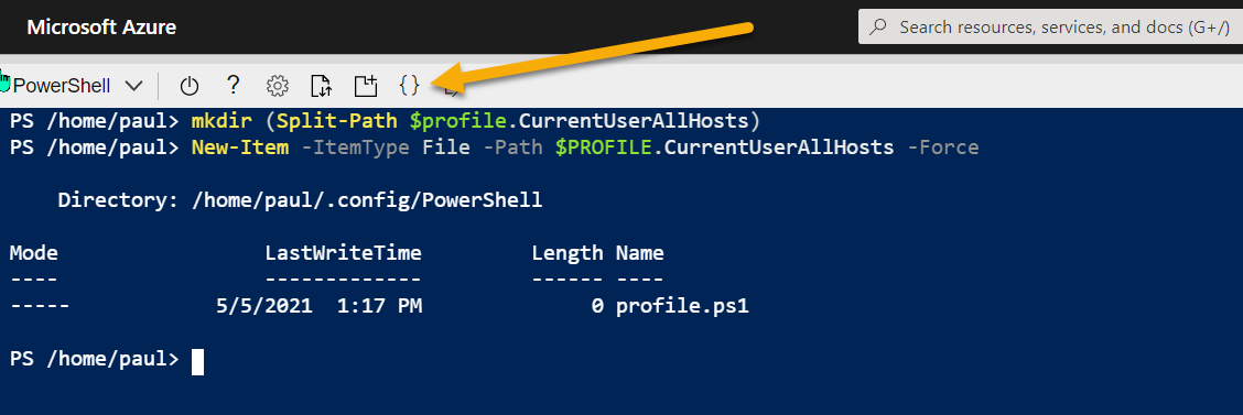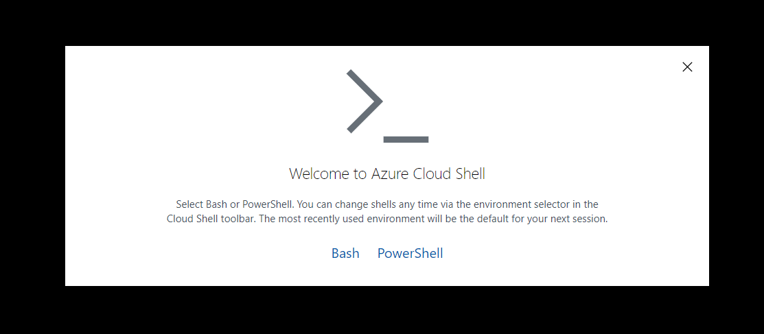 Select PowerShell. Then run through the first setup of the Azure Shell: