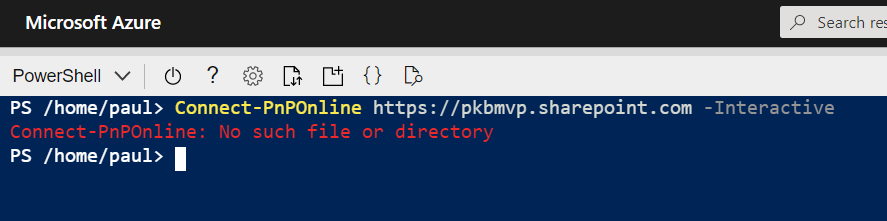 I recently encountered a scenario recently where I was looking to do a quick technical check on some advice I was giving to another member of the community regarding PowerShell – especially capturing the output of PnP PowerShell commands and store in a text file. When I responded to the tweet, I was away from my computer, but I did have my iPad (with keyboard) with me and wanted to see if I could use PnP PowerShell with Azure Shell – you may have guessed the result by – YES you can. I was not using best security practice at the time to log in (username/password), which would not work if I had MFA on the account (which I should have ☹). I will include better practice configuration to include certificates and an Azure AD App in this article.