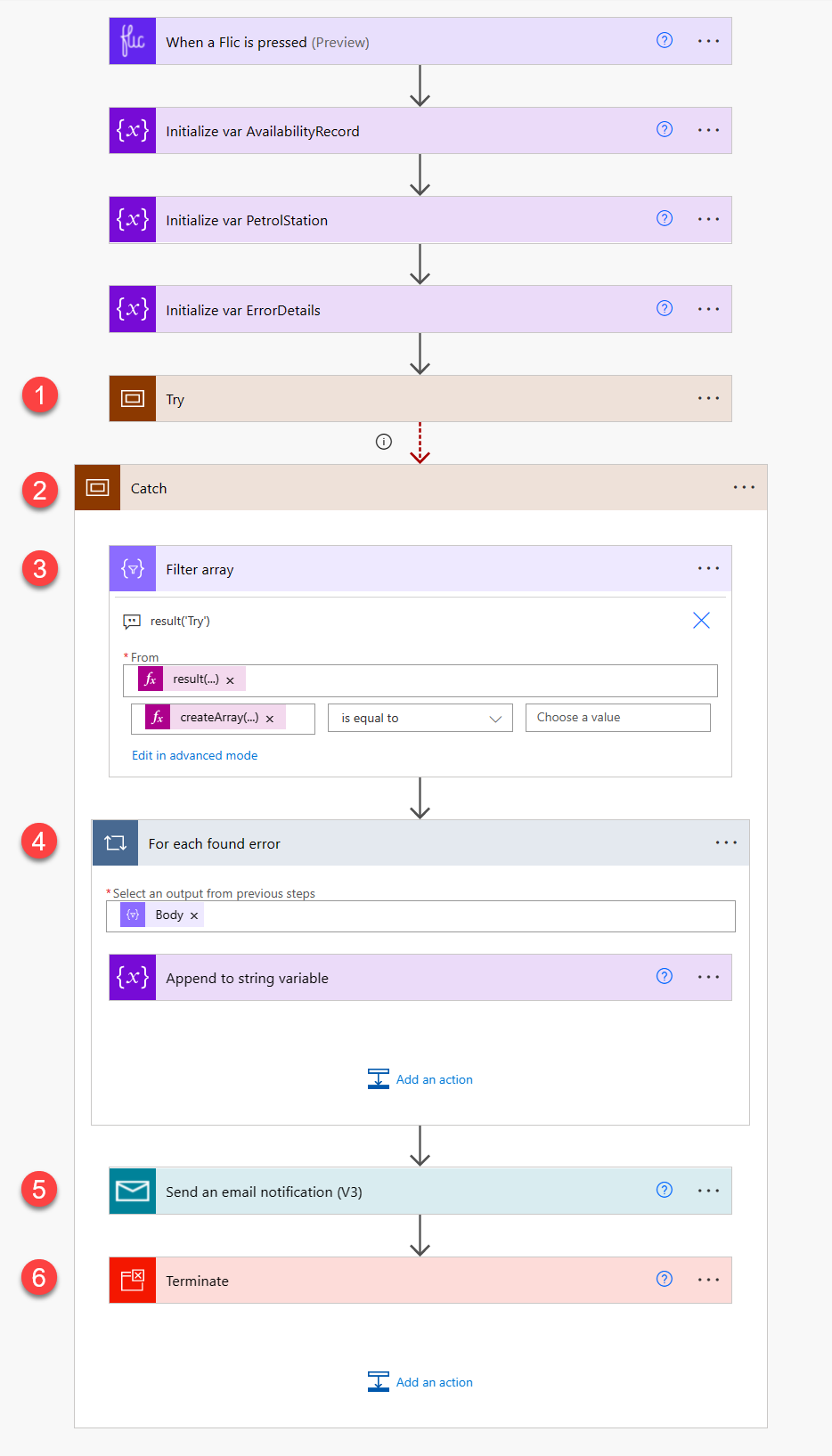 Process in the “Catch” scope first filters (3) results of the “Try”