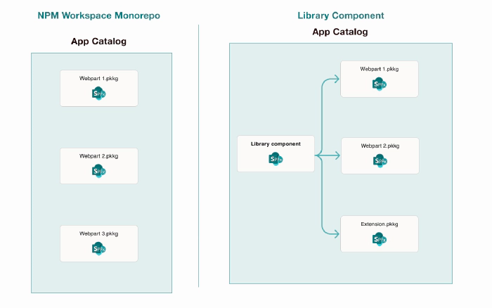 | Best for | Managing multiple SPFx projects that share utilities, APIs, configs | Centralized versioning of reusable UI components |