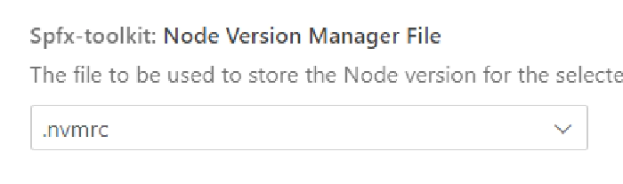 SPFx Toolkit supports NVM and NVS so we have given you new settings that allow you to define which Node version configuration file you want to be created. It may be either .nvmrc for nvm and nvs but also for nvs it is possible to create .node-version config file. You may define that using the new extension setting.