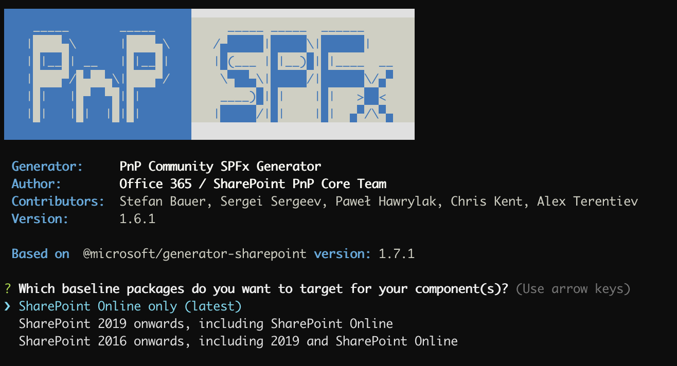 Depending on the selections made different options can be supported by the SharePoint Framework.