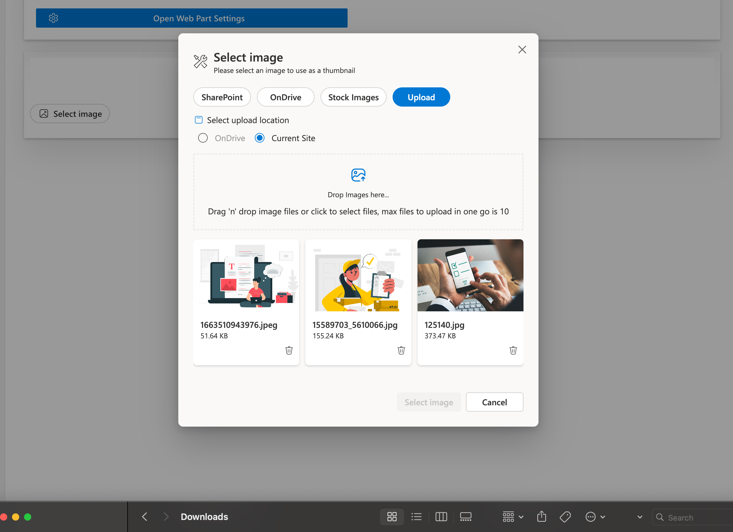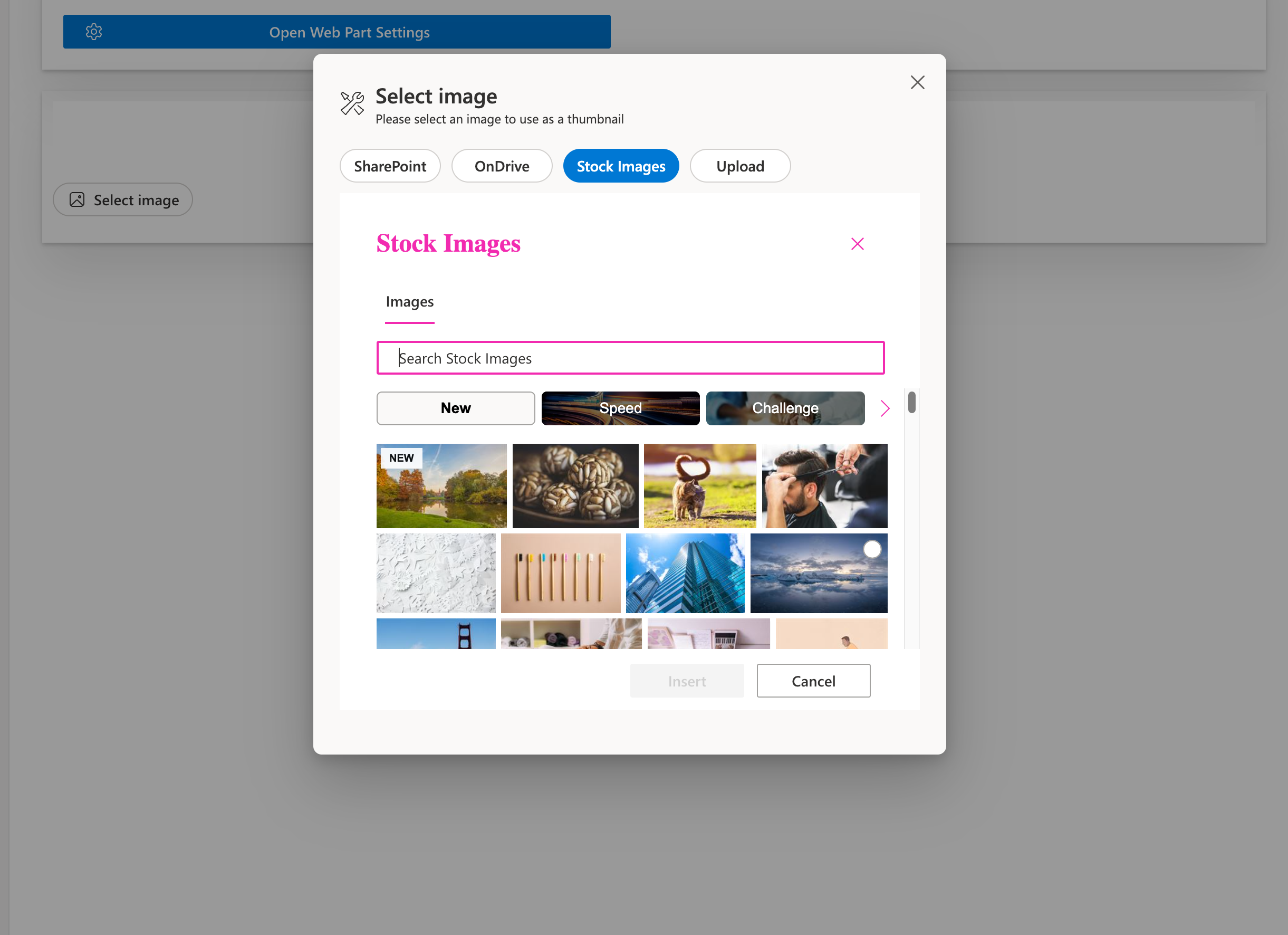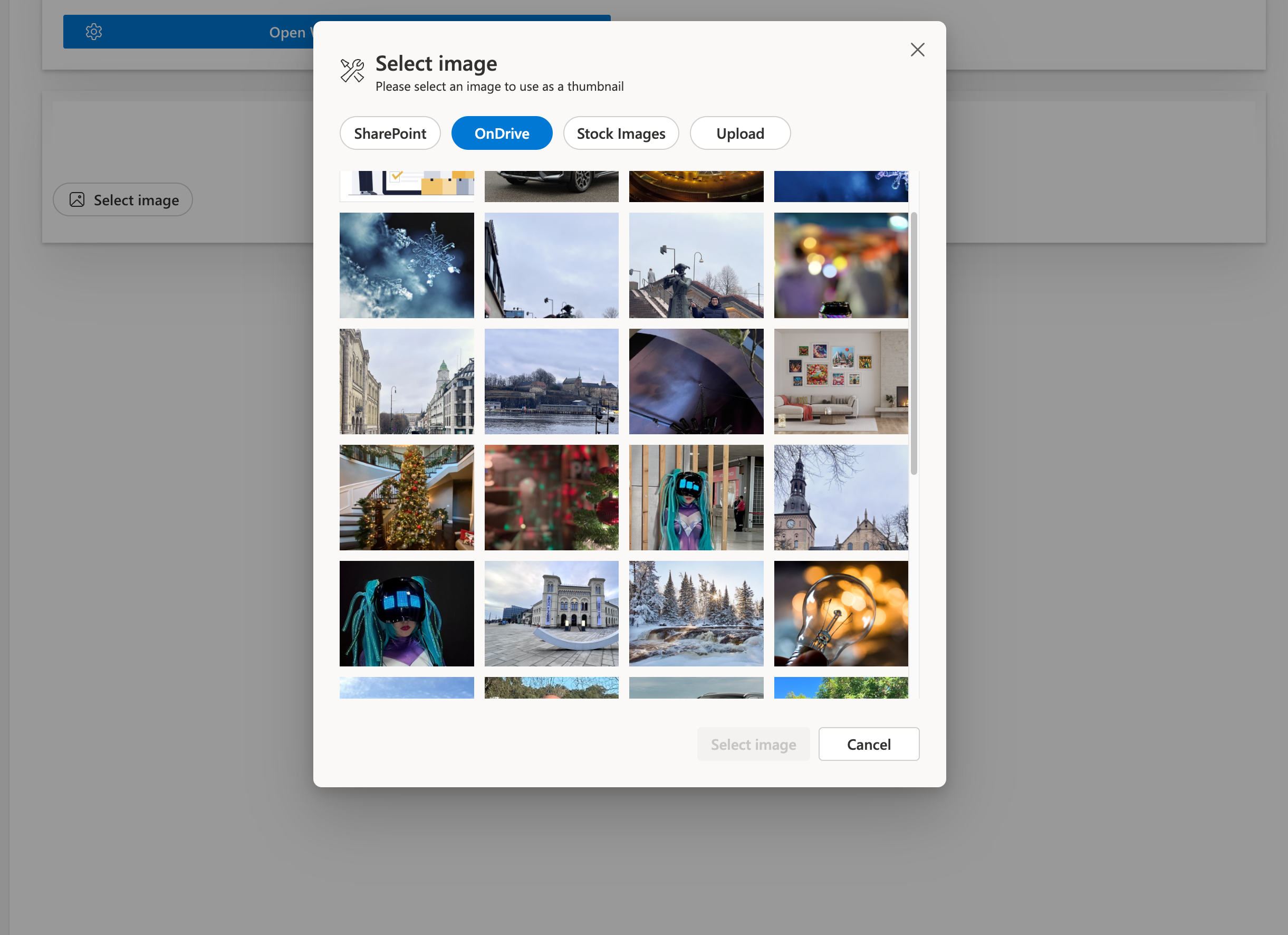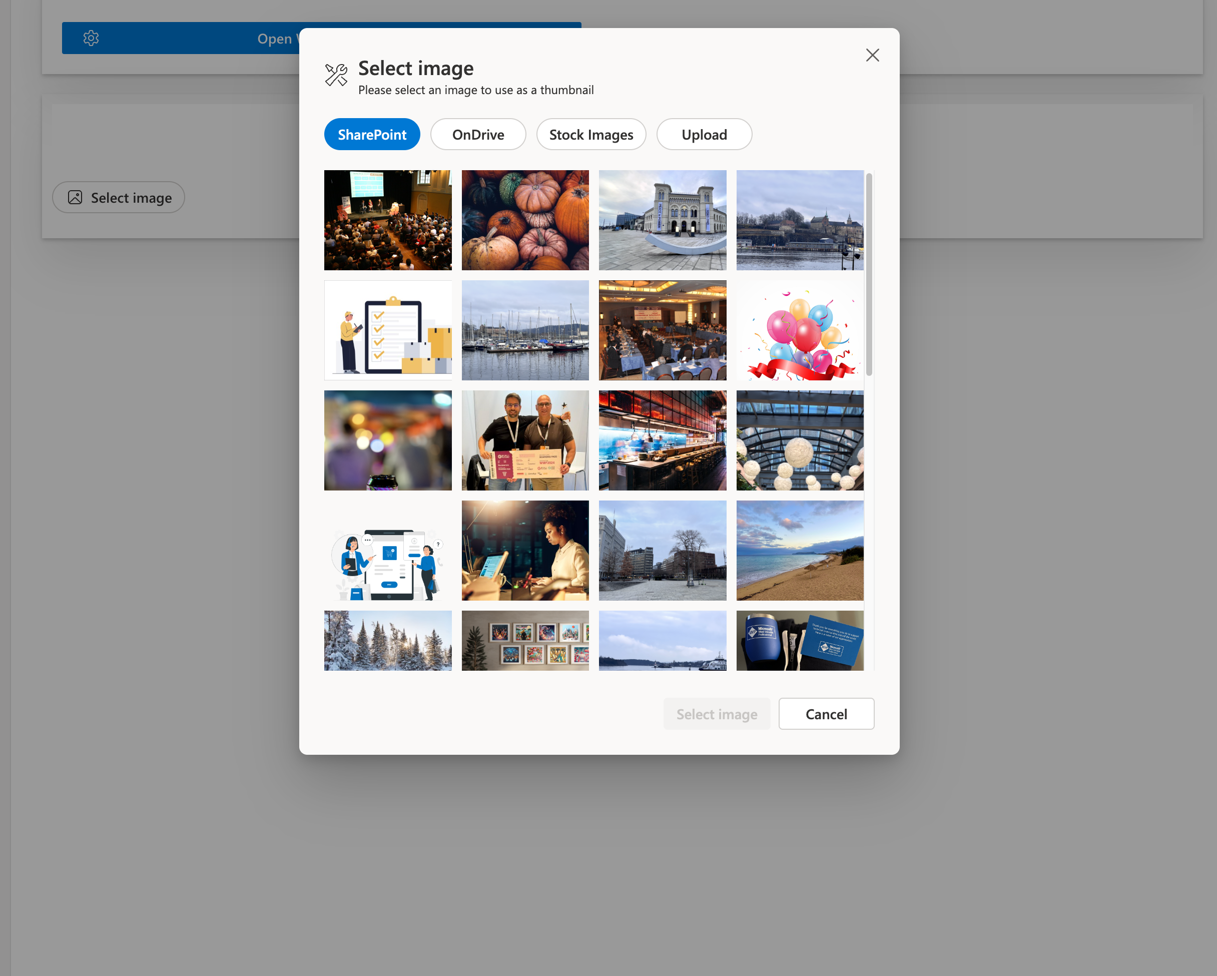 This control allows you to select or upload image from SharePoint, OneDrive or Stock Images.