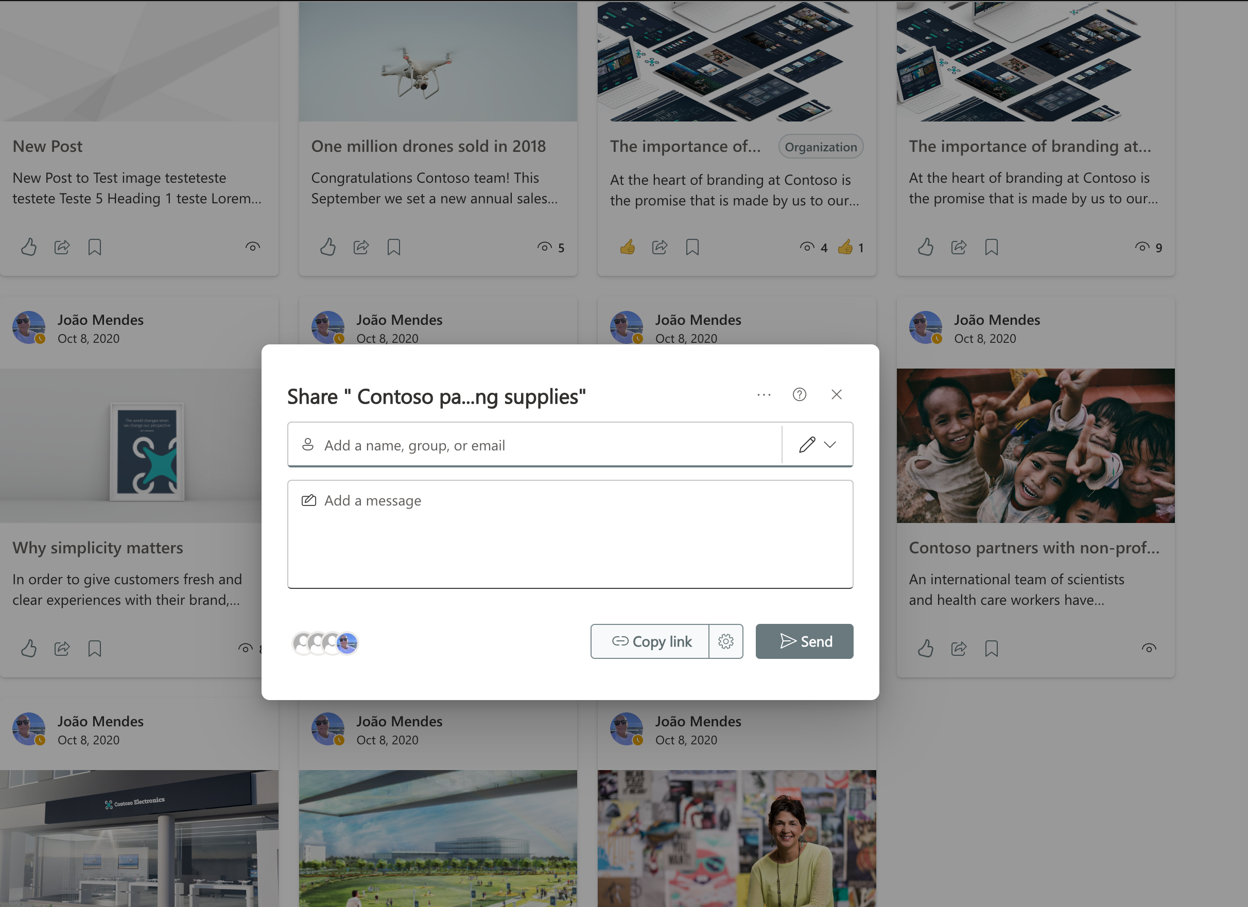 The ShareDialog control is a convenient way to integrate Office Online's share dialog into your solution, allowing users to share content such as documents, lists, directly from your application.