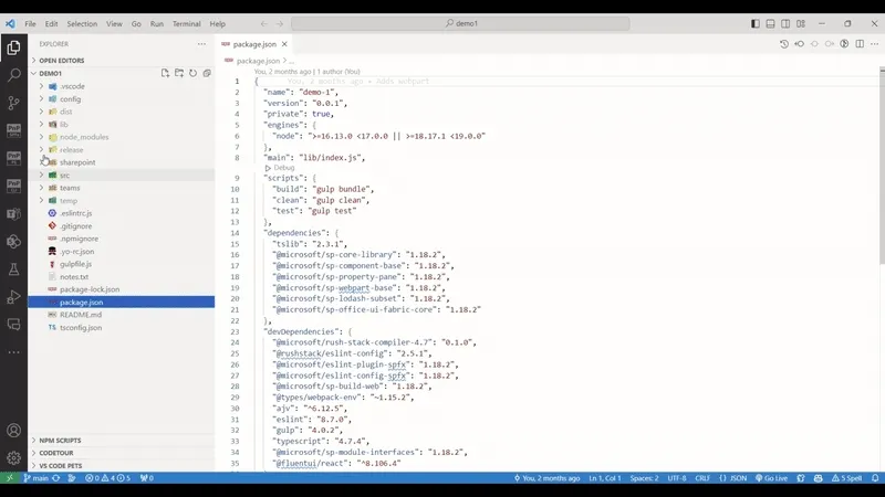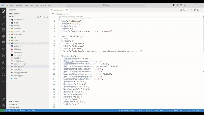 Section titled “Upgrade project”Uses CLI for Microsoft 365 to create a .md and/or code tour report with upgrade guidance to the latest supported SPFx version by the extension. The upgrade guidance provides optional as well as required steps a user needs to take manually in order to upgrade the project. At the end of the guidance file, the user may find a summary of the steps in a single script and a couple of manual steps that need to be taken.